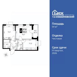 Продаётся 2-к квартира номер 212 общей площадью 54.4 кв.м. на 19-м этаже 25 этажного здания. Чистовая отделка. Цена с учётом скидки.