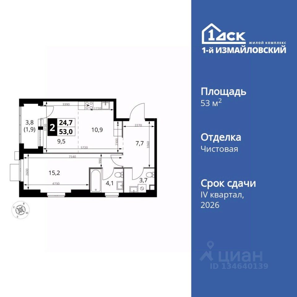 Продаётся 2-к квартира номер 229 общей площадью 53 кв.м. на 21-м этаже 25 этажного здания. Чистовая отделка. Цена с учётом скидки.