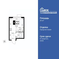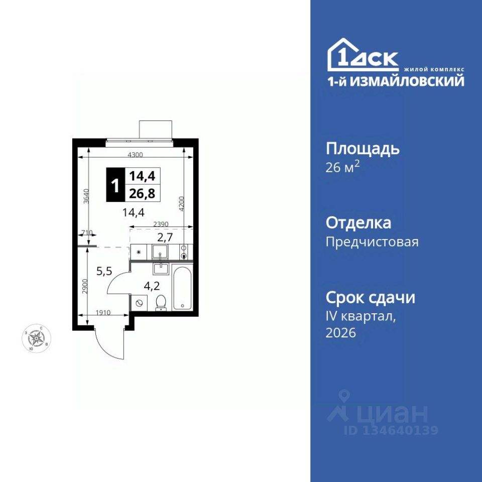Продаётся квартира-студия номер 365 общей площадью 26.8 кв.м. на 11-м этаже 12 этажного здания. Отделка Whitebox. Цена с учётом скидки.