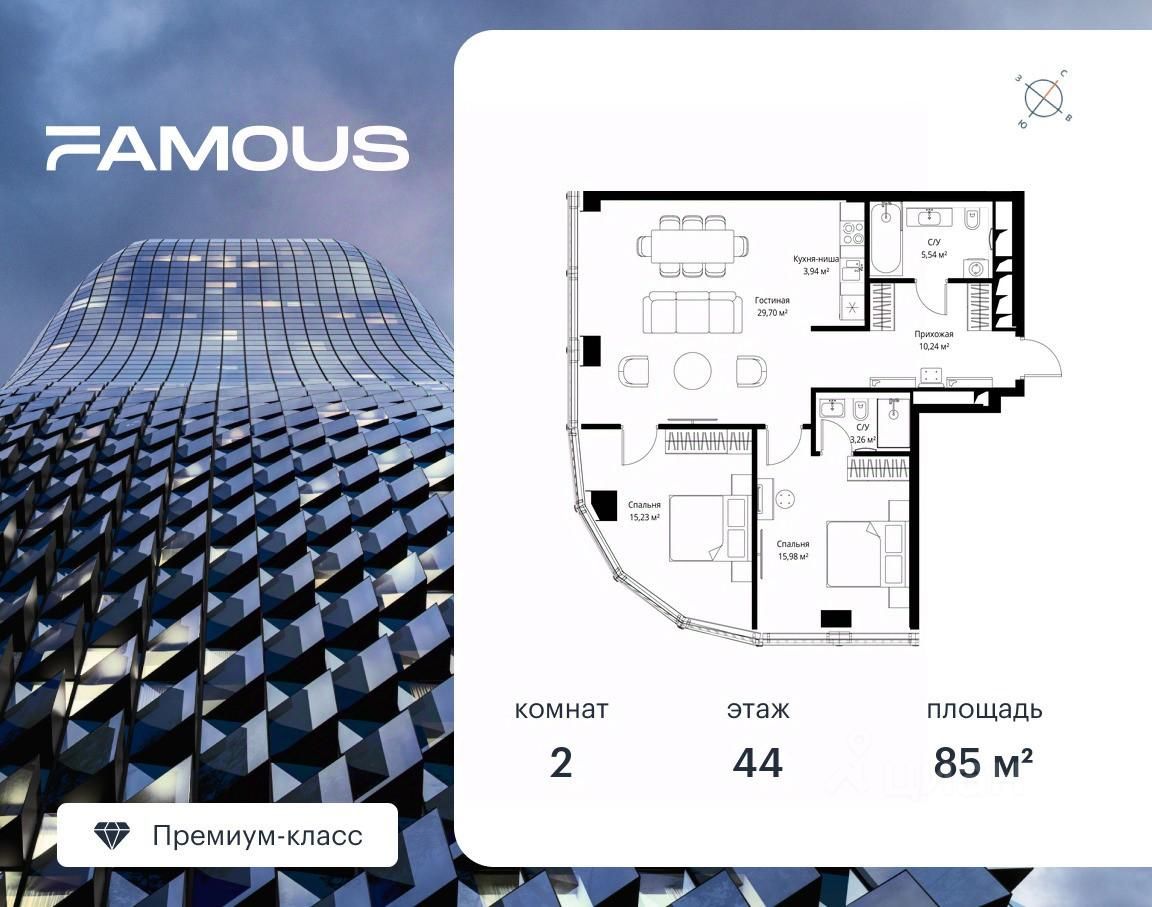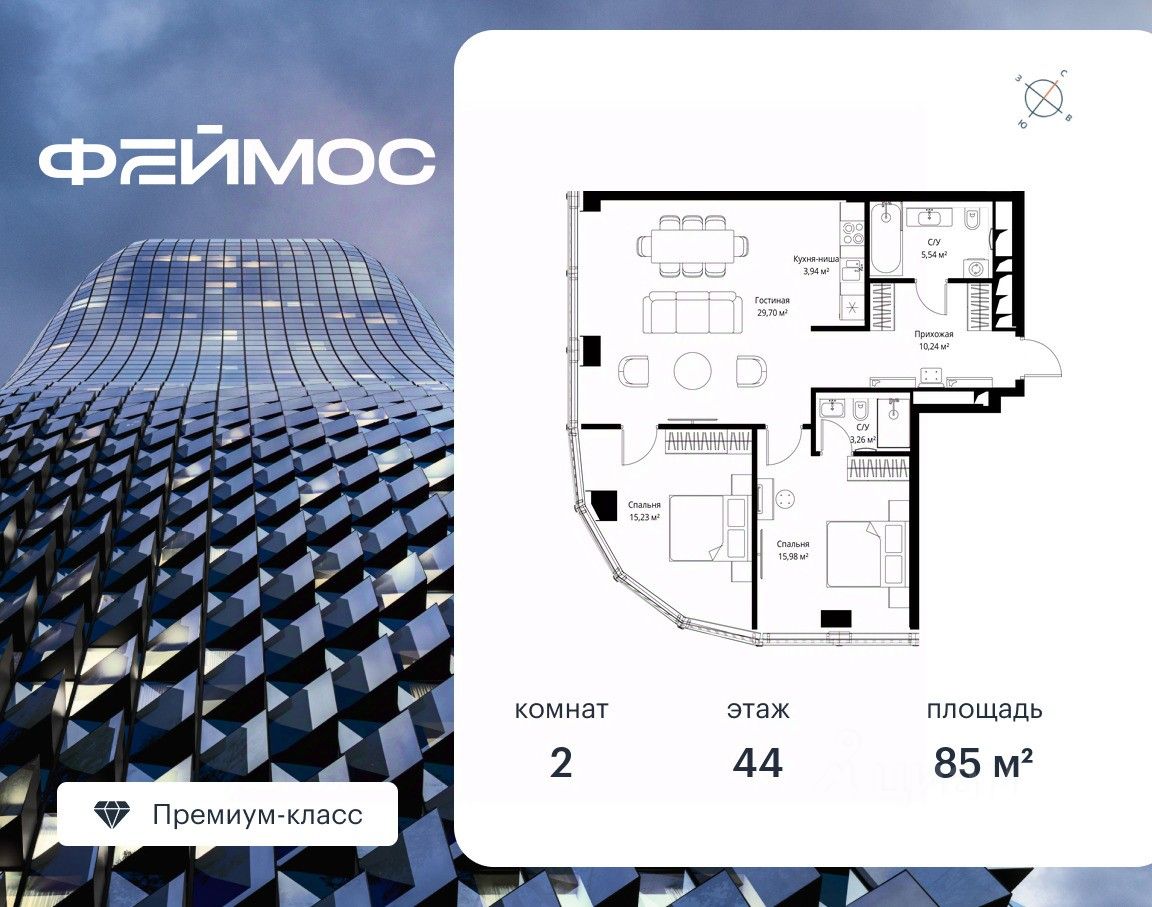 Если к слову "будущее" подобрать архитектурный синоним, им непременно станет премиальный небоскреб Феймос. Он расположен в закрытом квартале "Фили Сити" - настоящем городе в городе, окруженном зеленым ореолом из аллей и скверов, с инфраструктурой для жизни и отдыха самых взыскательных горожан.