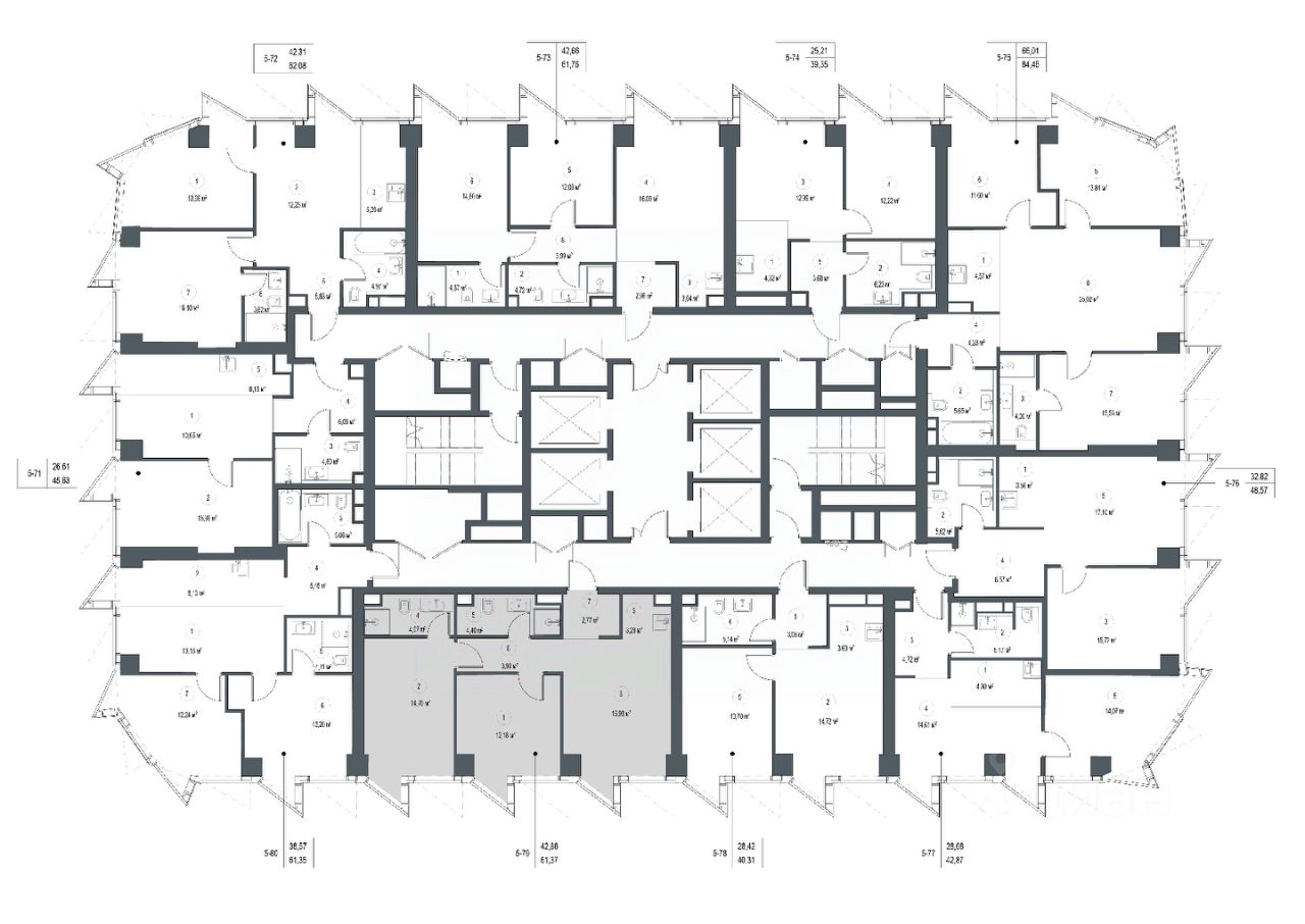 Продаётся 2-к квартира площадью 61.37 м² с предчистовой отделкой на 9-м этаже премиального небоскреба Famous.