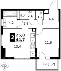 Продаётся 2-к квартира номер 875 общей площадью 44.7 кв.м. на 2-м этаже 25 этажного дома. Без отделки. Цена с учётом скидки!