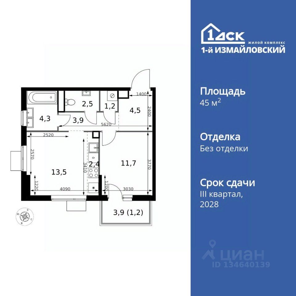 Продаётся 2-к квартира номер 1051 общей площадью 45.2 кв.м. на 18-м этаже 25 этажного здания. Без отделки. Цена с учётом скидки.