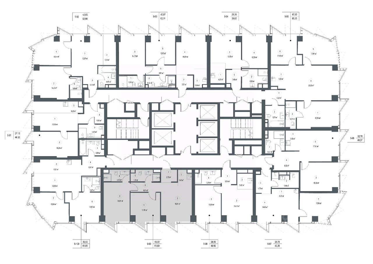 Продаётся 2-к квартира площадью 61.69 м² с предчистовой отделкой на 11-м этаже премиального небоскреба Famous.