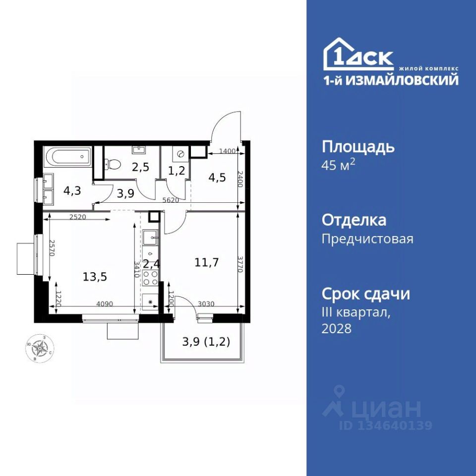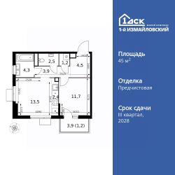Продаётся 2-к квартира номер 996 общей площадью 45.2 кв.м. на 13-м этаже 25 этажного здания. Отделка Whitebox. Цена с учётом скидки.