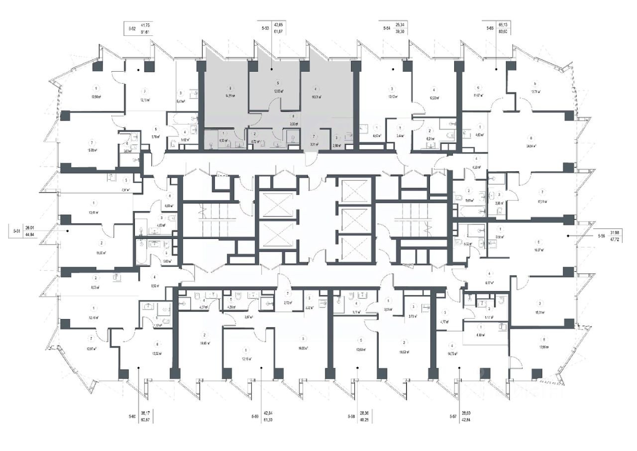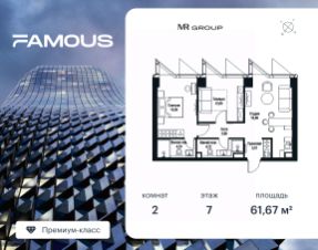 Продаётся 2-к квартира площадью 61.67 м² с предчистовой отделкой на 7-м этаже премиального небоскреба Famous.