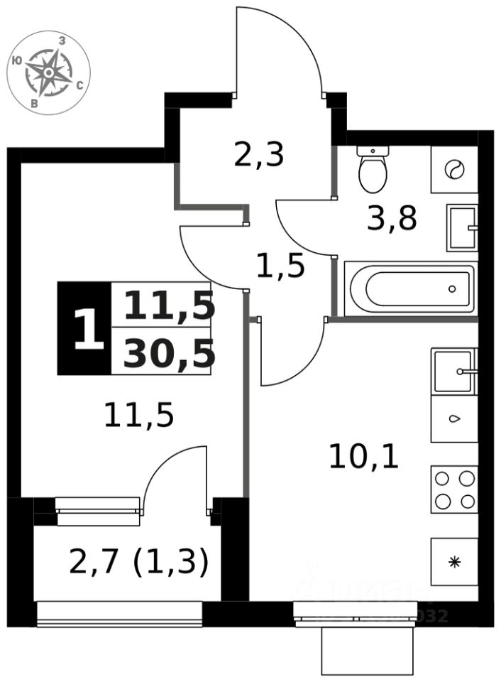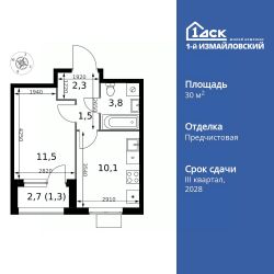 Продаётся 1-к квартира номер 961 общей площадью 30.5 кв.м. на 9-м этаже 25 этажного здания. Отделка Whitebox. Цена с учётом скидки.