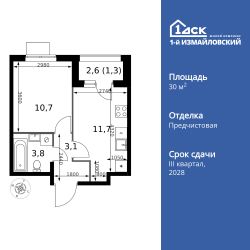 Продаётся 1-к квартира номер 967 общей площадью 30.6 кв.м. на 10-м этаже 25 этажного здания. Отделка Whitebox. Цена с учётом скидки.