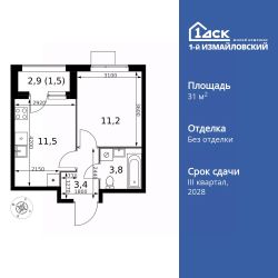 Продаётся 1-к квартира номер 1120 общей площадью 31.4 кв.м. на 24-м этаже 25 этажного здания. Без отделки. Цена с учётом скидки.