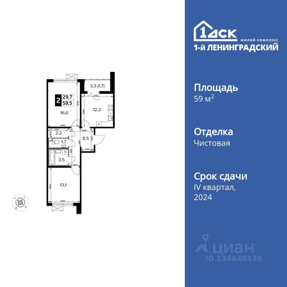 Продаётся 2-к квартира номер 375 общей площадью 59.4 кв.м. на 13-м этаже 13 этажного здания. Чистовая отделка. Цена с учётом скидки.