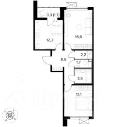 Продаётся 2-к квартира номер 380 общей площадью 59.4 кв.м. на 3-м этаже 12 этажного дома. Отделка Whitebox.
