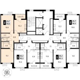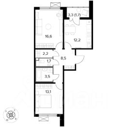 Продаётся 2-к квартира номер 419 общей площадью 59.4 кв.м. на 12-м этаже 12 этажного дома. Отделка Whitebox.