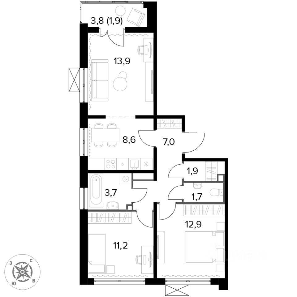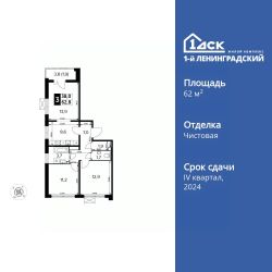 Продаётся 3-к квартира номер 481 общей площадью 62.8 кв.м. на 9-м этаже 12 этажного здания. Чистовая отделка. Цена с учётом скидки.