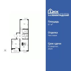 Продаётся 2-к квартира номер 66 общей площадью 61.4 кв.м. на 10-м этаже 14 этажного здания. Чистовая отделка. Цена с учётом скидки.
