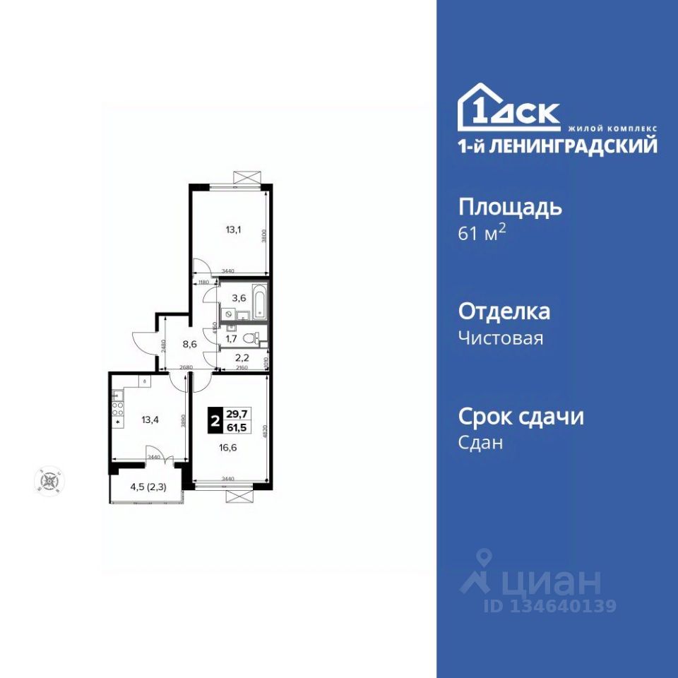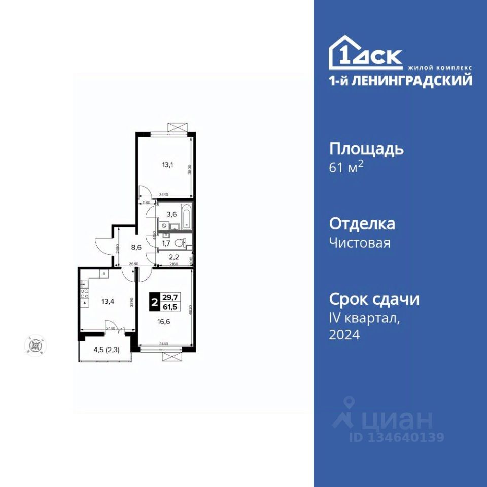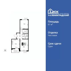 Продаётся 2-к квартира номер 98 общей площадью 61.4 кв.м. на 14-м этаже 14 этажного здания. Чистовая отделка. Цена с учётом скидки.