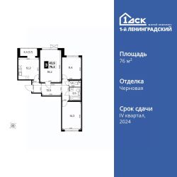 Продаётся 3-к квартира номер 125 общей площадью 76.4 кв.м. на 7-м этаже 14 этажного дома. Отделка Whitebox.