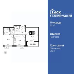 Продаётся 2-к квартира номер 195 общей площадью 53.2 кв.м. на 11-м этаже 14 этажного здания. Чистовая отделка. Цена с учётом скидки.