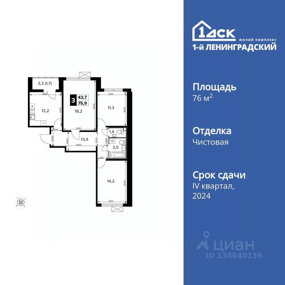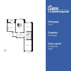 Продаётся 3-к квартира номер 201 общей площадью 76.1 кв.м. на 13-м этаже 14 этажного здания. Чистовая отделка. Цена с учётом скидки.