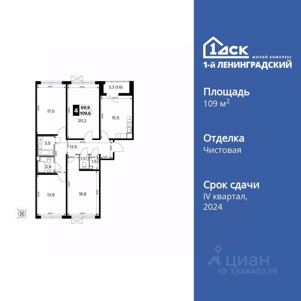 Продаётся 4-к квартира номер 330 общей площадью 109.9 кв.м. на 12-м этаже 14 этажного здания. Чистовая отделка. Цена с учётом скидки.