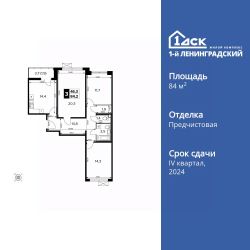 Продаётся 3-к квартира номер 400 общей площадью 84.4 кв.м. на 12-м этаже 14 этажного здания. Отделка Whitebox. Цена с учётом скидки.