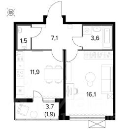 Продаётся 1-к квартира номер 546 общей площадью 42.2 кв.м. на 8-м этаже 14 этажного дома. Отделка Whitebox.