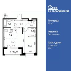 Продаётся 2-к квартира номер 12 общей площадью 50.5 кв.м. на 3-м этаже 21 этажного здания. Без отделки. Цена с учётом скидки.