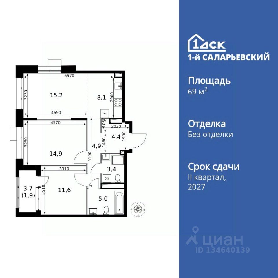 Продаётся 3-к квартира номер 373 общей площадью 69.4 кв.м. на 21-м этаже 25 этажного здания. Без отделки. Цена с учётом скидки.