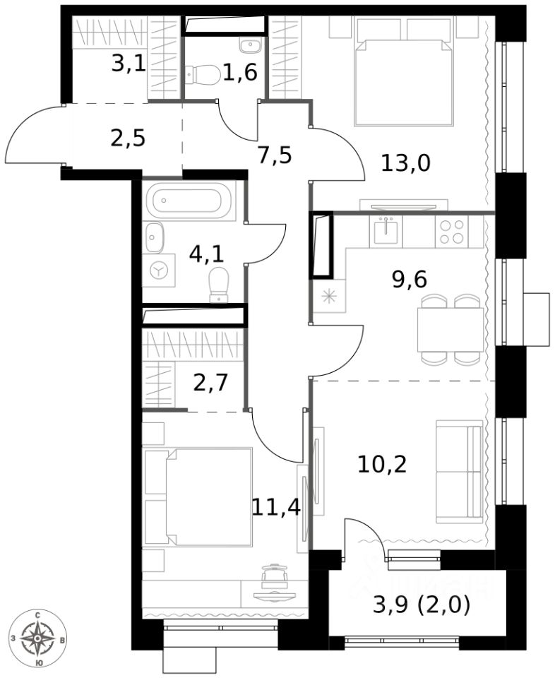 - Евроформат - просторное и удобное жилье с отличной планировкой.