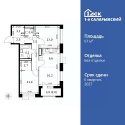 Продаётся 3-к квартира номер 414 общей площадью 67.7 кв.м. на 25-м этаже 25 этажного здания. Без отделки. Цена с учётом скидки.