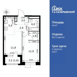 Продаётся 2-к квартира номер 415 общей площадью 44.9 кв.м. на 25-м этаже 25 этажного здания. Без отделки. Цена с учётом скидки.