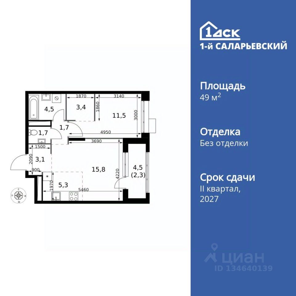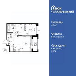 Продаётся 2-к квартира номер 305 общей площадью 49.3 кв.м. на 13-м этаже 25 этажного здания. Без отделки. Цена с учётом скидки.