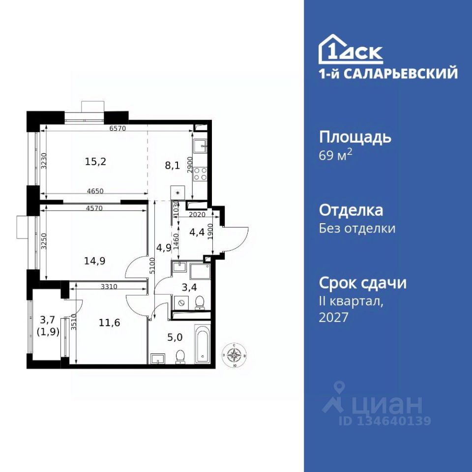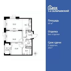 Продаётся 3-к квартира номер 256 общей площадью 69.4 кв.м. на 8-м этаже 25 этажного здания. Без отделки. Цена с учётом скидки.