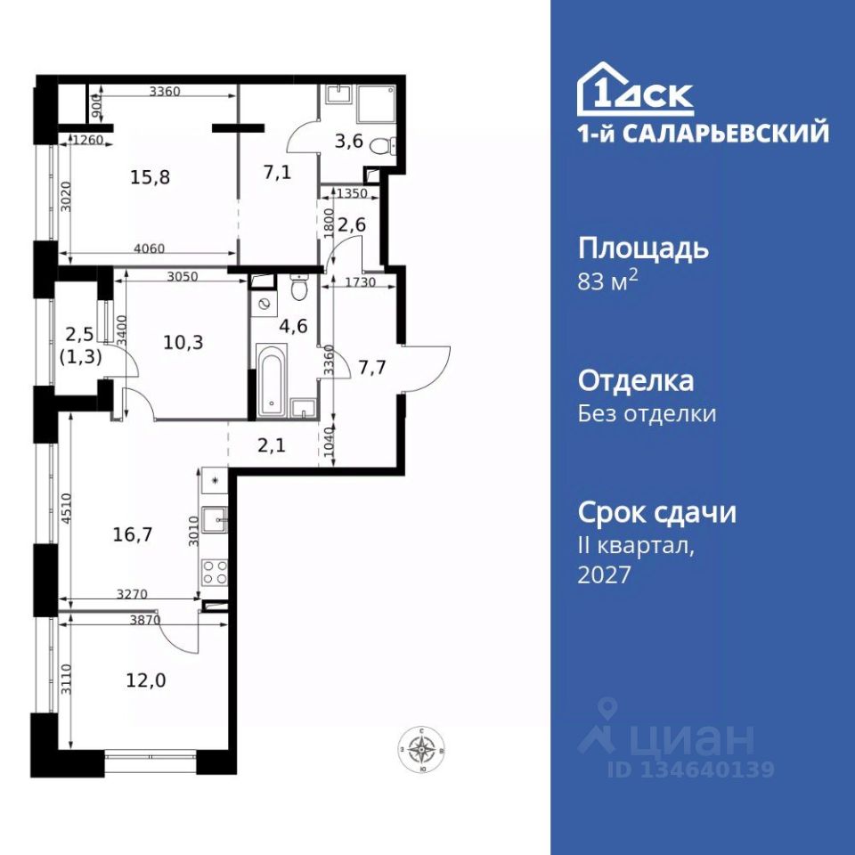 Продаётся 3-к квартира номер 202 общей площадью 83.8 кв.м. на 2-м этаже 25 этажного здания. Без отделки. Цена с учётом скидки.