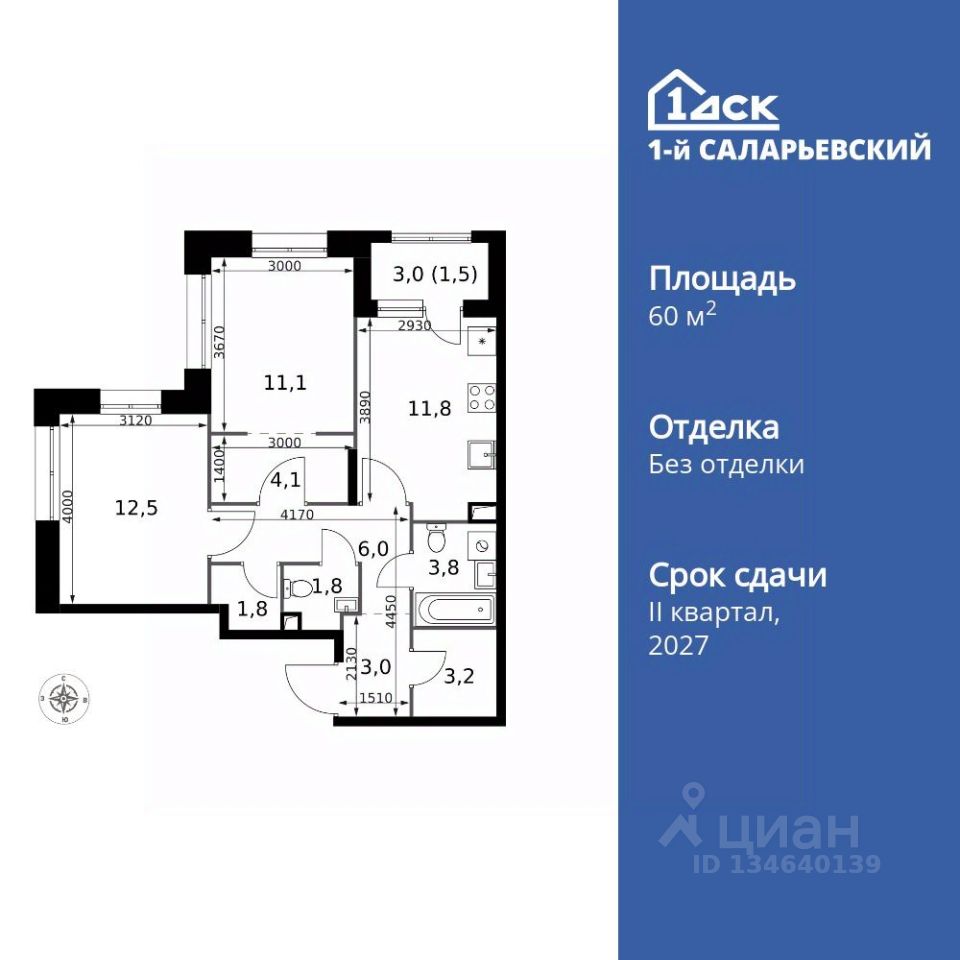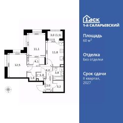 Продаётся 2-к квартира номер 204 общей площадью 60.6 кв.м. на 2-м этаже 25 этажного здания. Без отделки. Цена с учётом скидки.