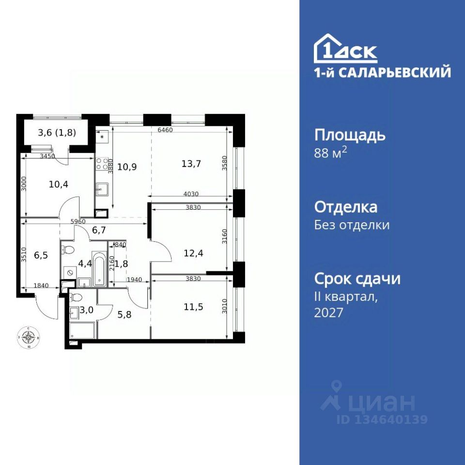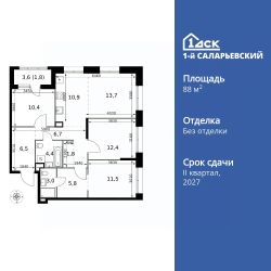 Продаётся 4-к квартира номер 205 общей площадью 88.9 кв.м. на 2-м этаже 25 этажного здания. Без отделки. Цена с учётом скидки.