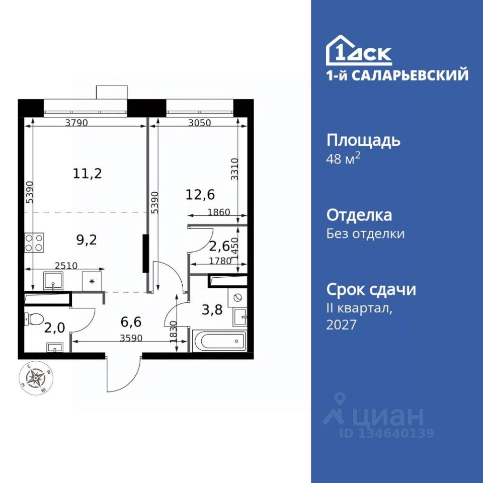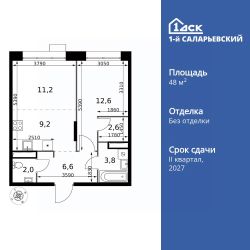 Продаётся 2-к квартира номер 515 общей площадью 48 кв.м. на 13-м этаже 21 этажного дома. Без отделки.