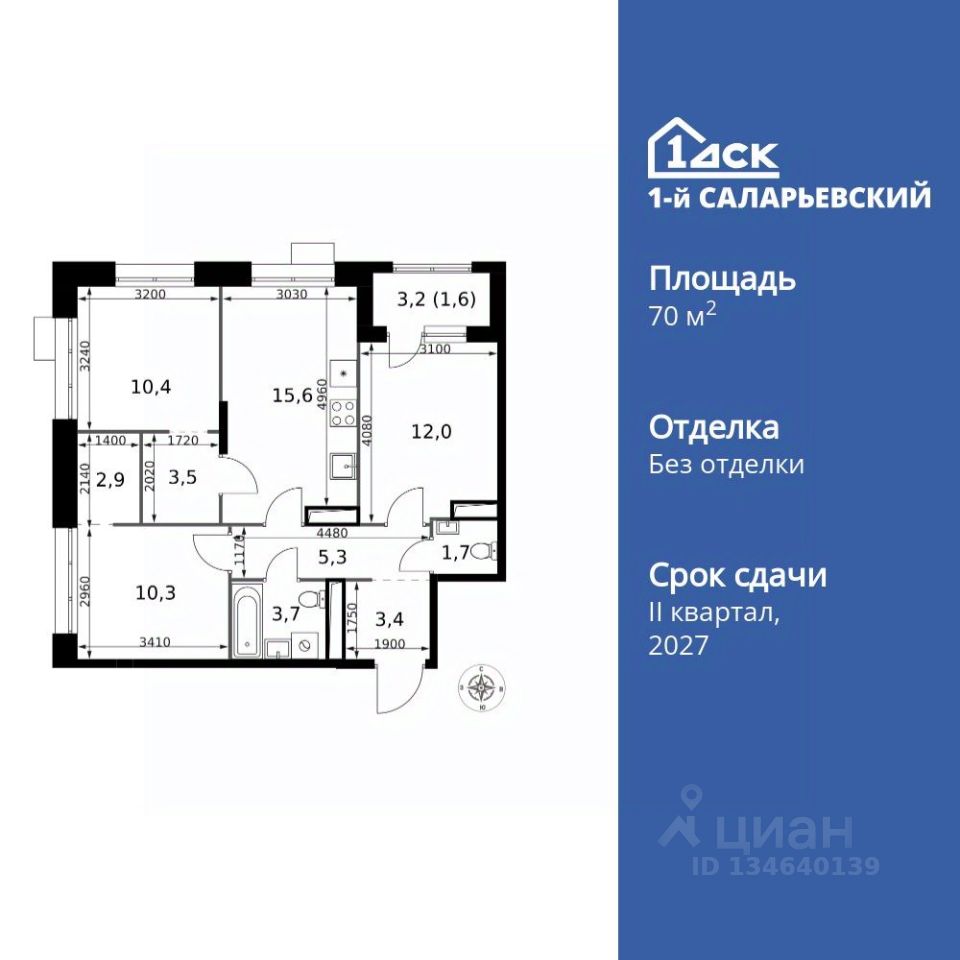Продаётся 3-к квартира номер 696 общей площадью 70.4 кв.м. на 13-м этаже 25 этажного здания. Без отделки. Цена с учётом скидки.