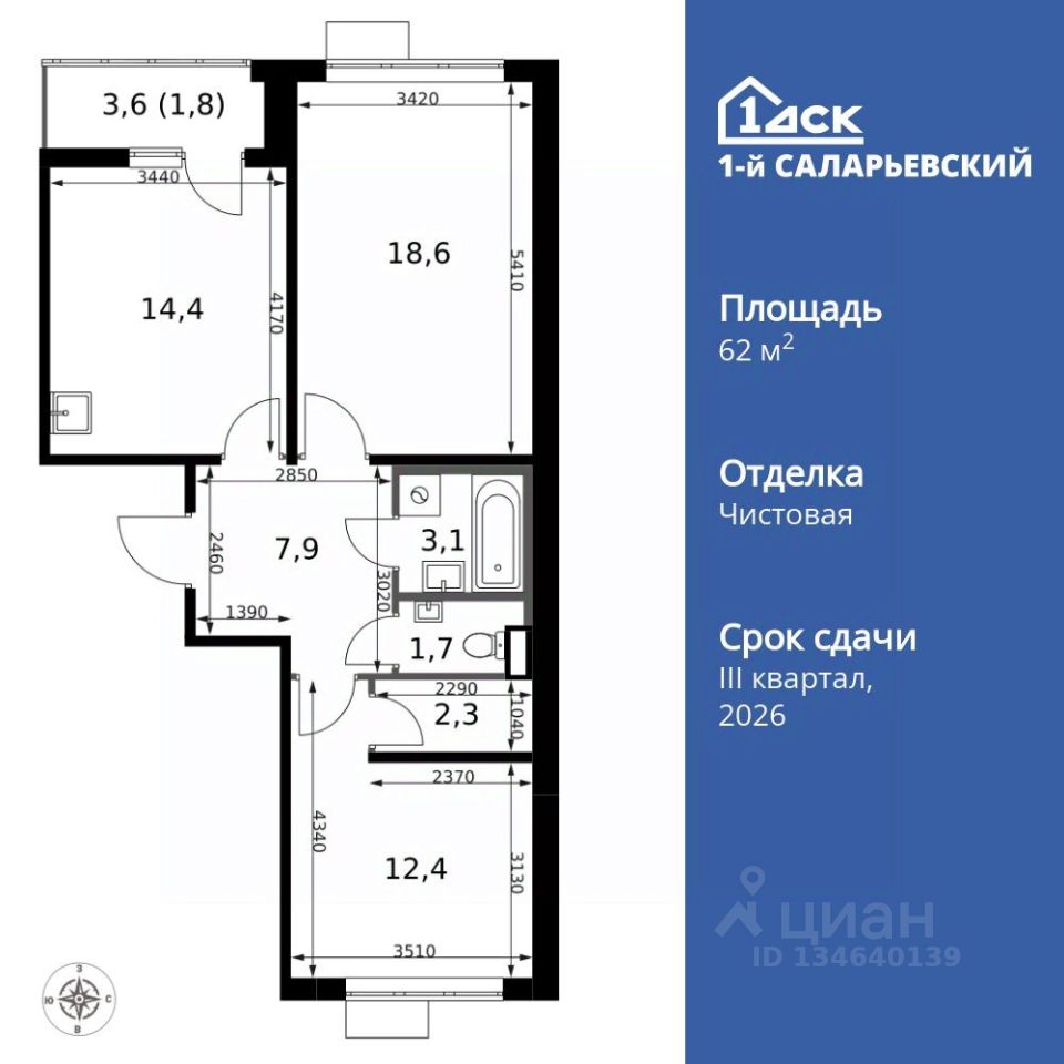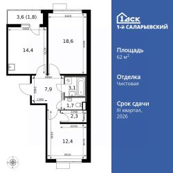 Продаётся 2-к квартира номер 164 общей площадью 62.2 кв.м. на 20-м этаже 24 этажного здания. Чистовая отделка. Цена с учётом скидки.