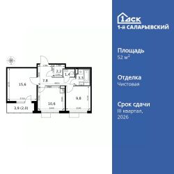 Продаётся 2-к квартира номер 387 общей площадью 52.7 кв.м. на 15-м этаже 16 этажного здания. Чистовая отделка. Цена с учётом скидки.