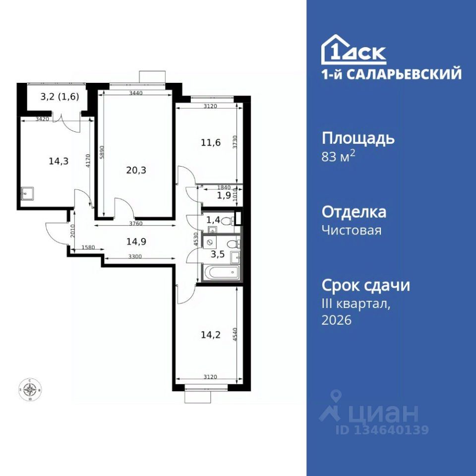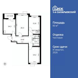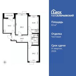 Продаётся 3-к квартира номер 390 общей площадью 83.7 кв.м. на 16-м этаже 16 этажного здания. Чистовая отделка. Цена с учётом скидки.