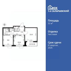 Продаётся 2-к квартира номер 392 общей площадью 52.7 кв.м. на 16-м этаже 16 этажного здания. Чистовая отделка. Цена с учётом скидки.