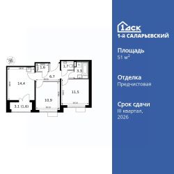 Продаётся 2-к квартира номер 536 общей площадью 51.7 кв.м. на 22-м этаже 24 этажного здания. Отделка Whitebox. Цена с учётом скидки.