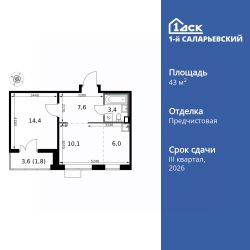 Продаётся 2-к квартира номер 538 общей площадью 43.3 кв.м. на 22-м этаже 24 этажного здания. Отделка Whitebox. Цена с учётом скидки.