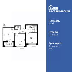 Продаётся 2-к квартира номер 697 общей площадью 51.8 кв.м. на 22-м этаже 24 этажного здания. Чистовая отделка. Цена с учётом скидки.