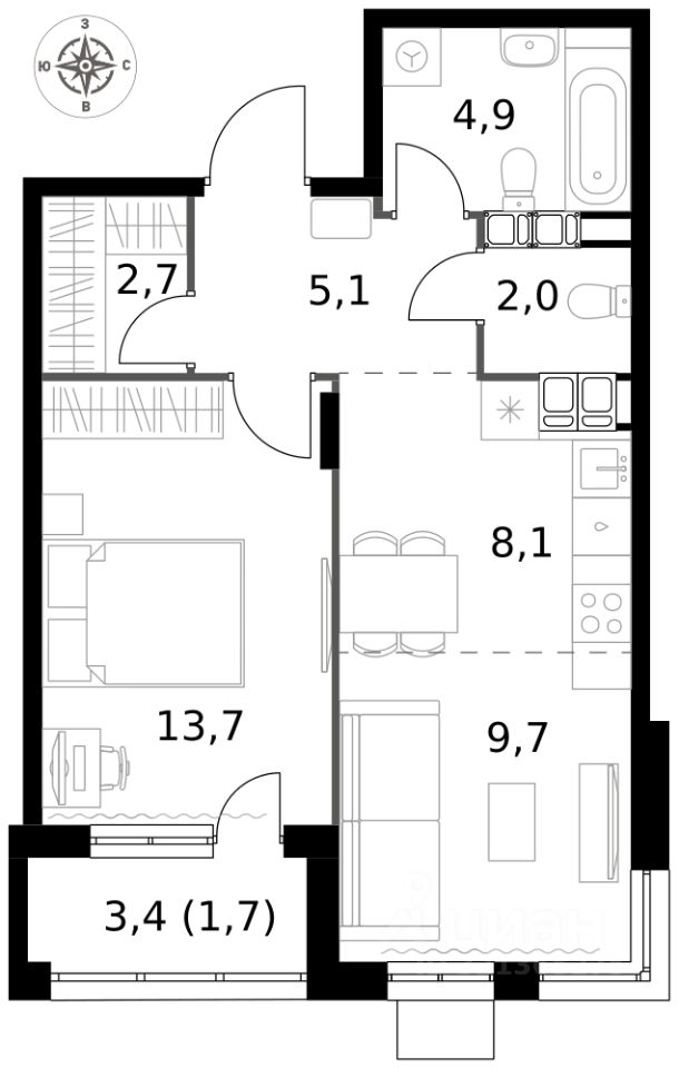 - Евроформат - просторное и удобное жилье с отличной планировкой.