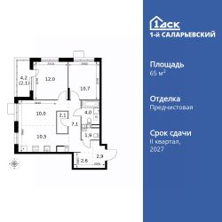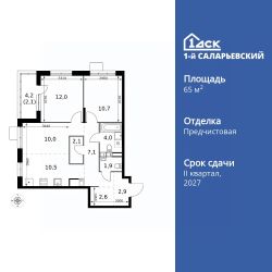 Продаётся 3-к квартира номер 28 общей площадью 65.9 кв.м. на 4-м этаже 25 этажного здания. Отделка Whitebox. Цена с учётом скидки.