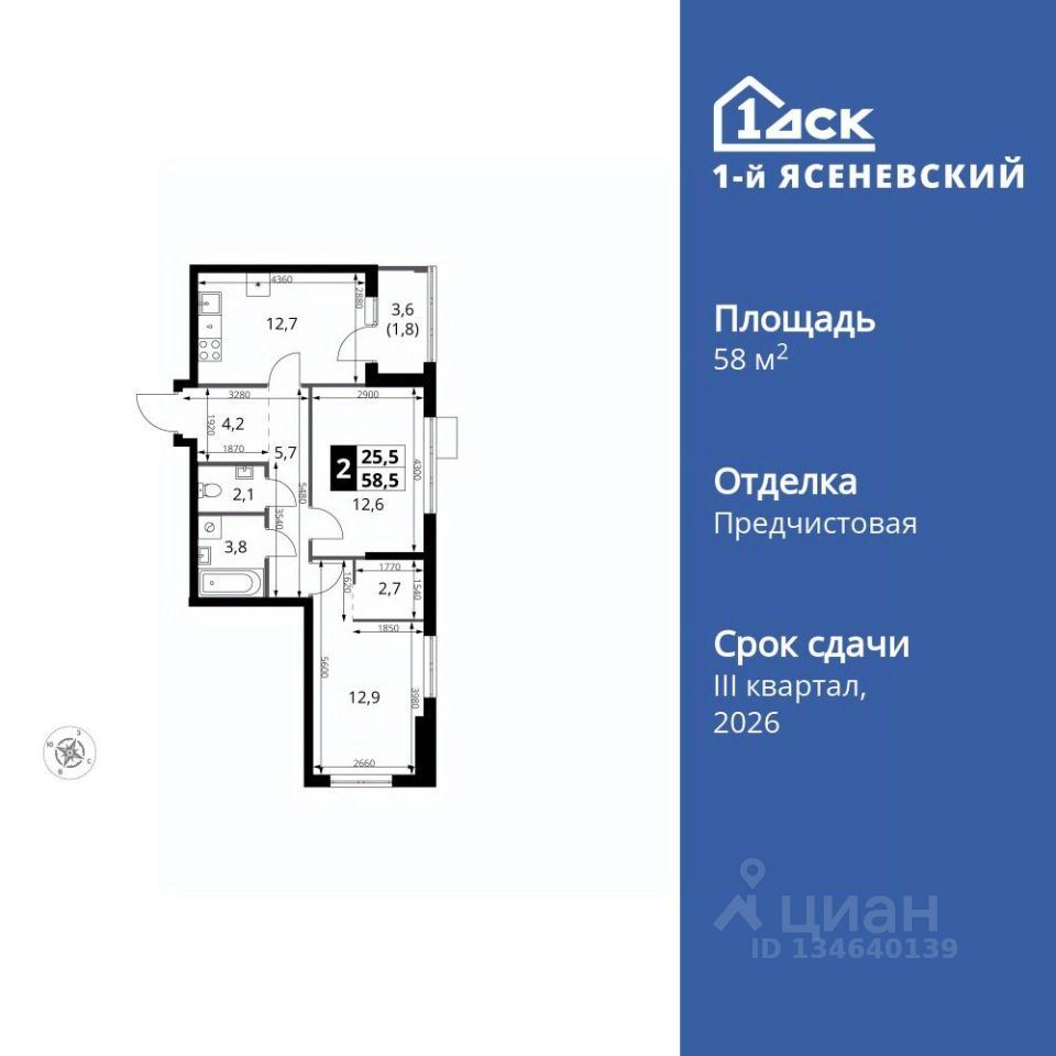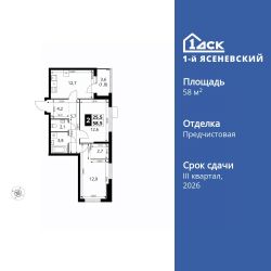 Продаётся 2-к квартира номер 442 общей площадью 58.5 кв.м. на 4-м этаже 18 этажного здания. Отделка Whitebox. Цена с учётом скидки.