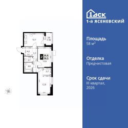 Продаётся 2-к квартира номер 552 общей площадью 58.5 кв.м. на 15-м этаже 18 этажного здания. Отделка Whitebox. Цена с учётом скидки.