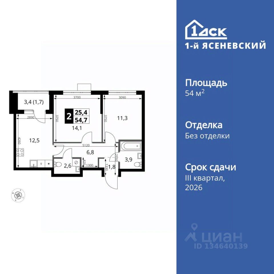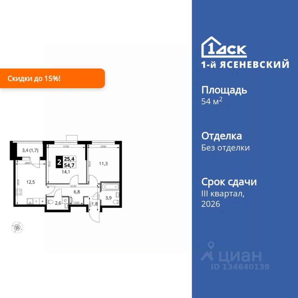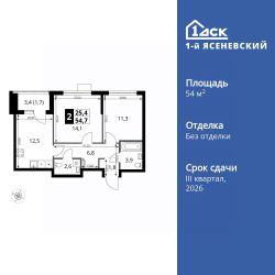 Продаётся 2-к квартира номер 679 общей площадью 54.7 кв.м. на 10-м этаже 16 этажного здания. Без отделки. Цена с учётом скидки.