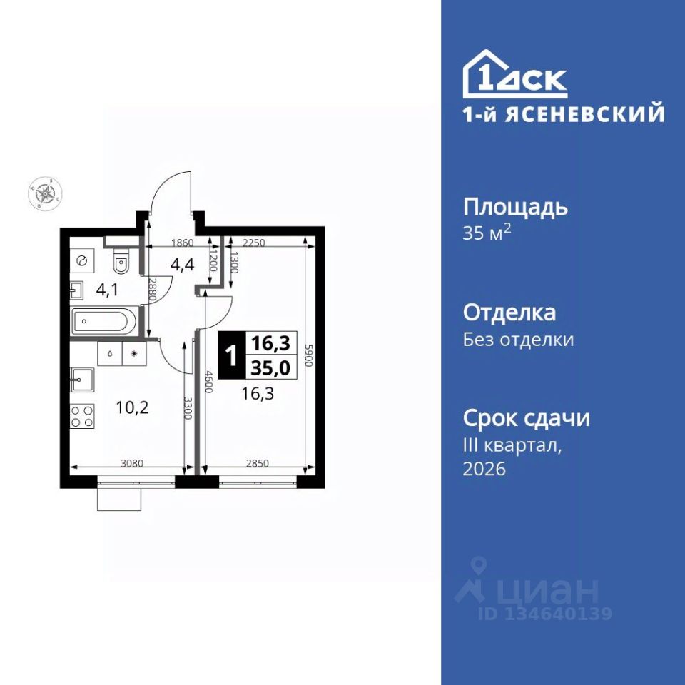 Продаётся 1-к квартира номер 704 общей площадью 35 кв.м. на 12-м этаже 16 этажного здания. Без отделки.